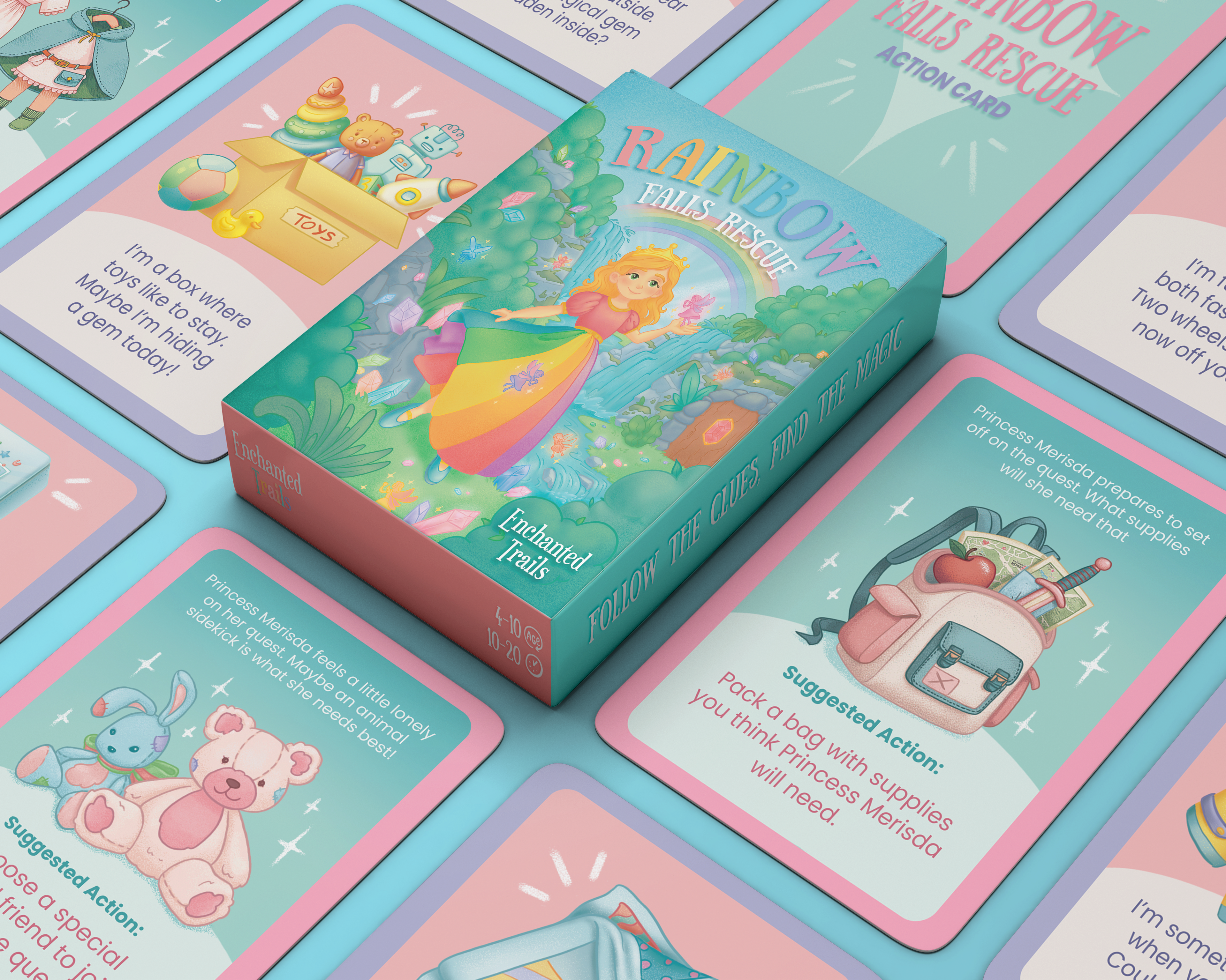Follow Princess Merisda’s journey through challenges children must solve through creative thinking and action. For younger players, each card also includes a suggested solution, ensuring that the game remains fun and accessible.
